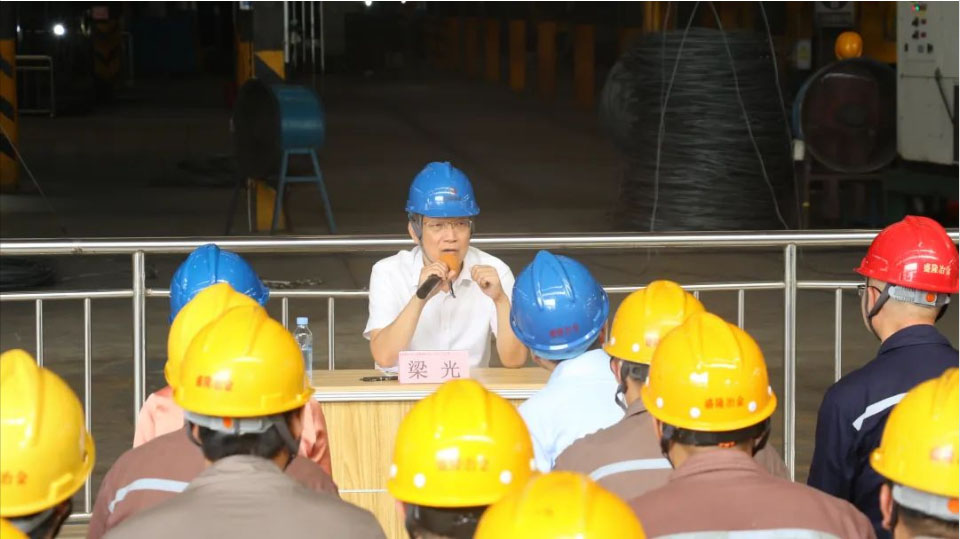在轧钢棒线厂六车间,梁光与职工们面对面坐在一起,他从《习近平关于工人阶级和工会工作论述摘编》引入,向现场的职工宣讲了中国工会第十八次全国代表大会的主要精神,深入宣讲了习近平同中华全国总工会新一届领导班子集体谈话时的重要讲话精神、蔡奇书记代表党中央的致词、王东明在大会上所作的工作报告和在全总十八届一次执委会上的讲话精神等方面内容。同时,梁光还结合当前我市的经济形势和盛隆公司的生产情况进行精彩的宣讲,博得了现场职工的阵阵掌声。