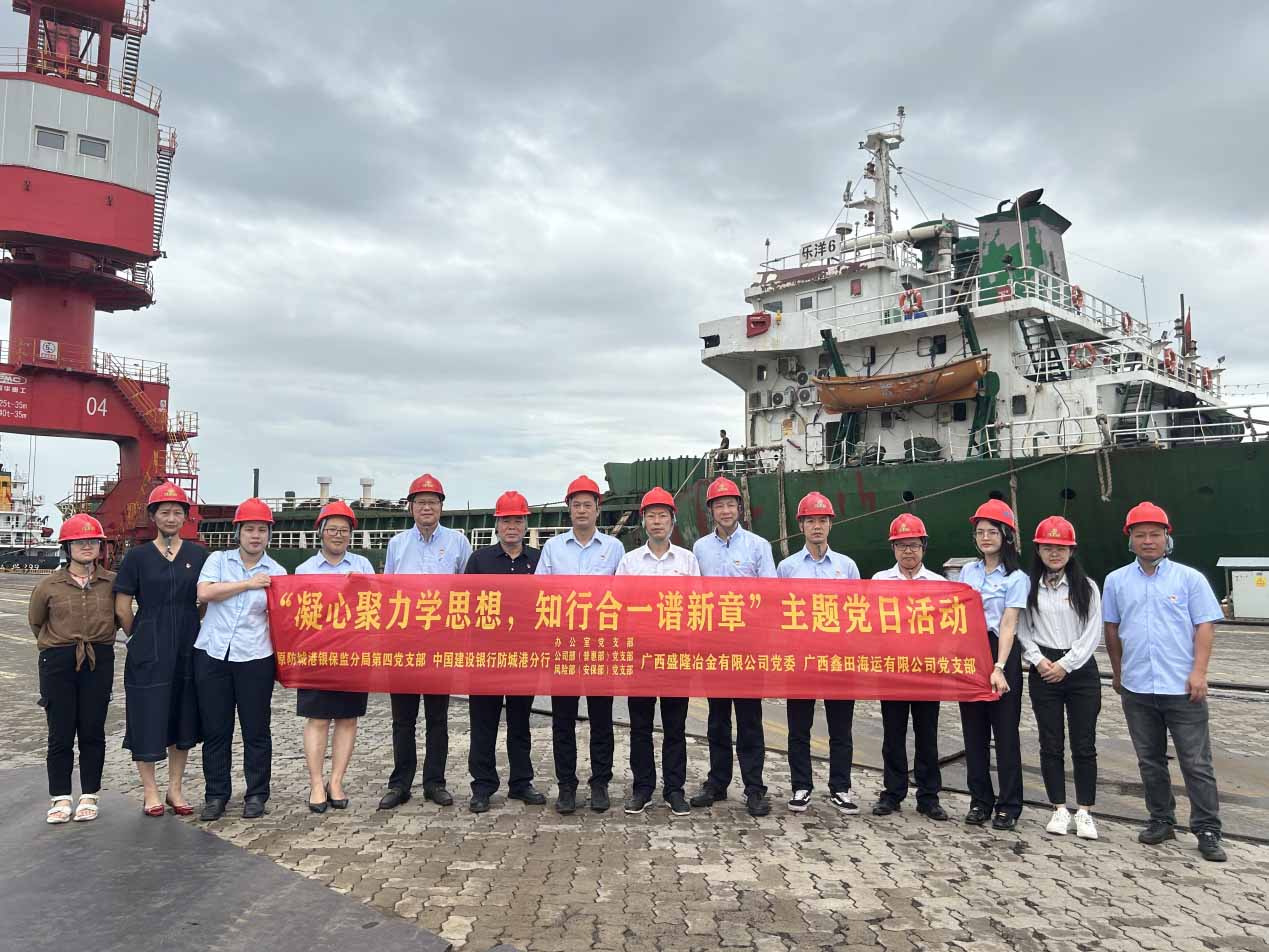 8月26日,乐竞官方网页版党委,原防城港银保监分局第四党支部,中国建设银行防城港分行办公室、公司部、风险部党支部,广西鑫田海运有限公司党支部,为深入学习贯彻习近平新时代中国特色社会主义思想,牢牢把握“学思想、强党性、重实践、建新功”总要求,坚持以学铸魂、以学增智、以学正风、以学促干,更好服务西部陆海新通道建设,促进北部湾国际门户港高质量发展,联合开展“凝心聚力学思想,知行合一谱新章”主题党日活动,并参观了盛隆码头公司。